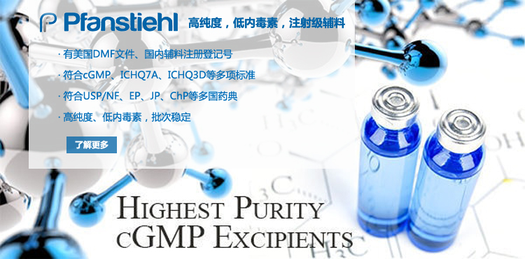 “熱烈祝賀Pfanstiehl的注射級甘氨酸Glycine(G-140)喜獲CDE登記號F20250000403, 這是Pfanstiehl產品獲得的第18個CDE登記號!”甘氨酸在醫藥輔料制劑中應用廣泛,, 可作為緩沖劑,增溶劑,穩定劑等,具有諸多優勢。Pfanstiehl秉承一貫高品質理念,為滿足全球生物制藥行業對于高品質甘氨酸的需求,隆重推出的注射級甘氨酸Glycine (G-140), 具有超高純度,超低內毒素,超低金屬殘留的特點,單獨檢測29種金屬離子,并且新增DNA,RNA,DNA酶,RNA酶和脂肪酶,亞硝酸鹽等多項質量指標的檢測,符合多國藥典規定(USP, EP, BP, JPE, ChP),可用于生物治療性藥物和疫苗的生產。產品信息:· 產品名稱:Glycine, High Purity, Low Endotoxin, Low Metals, USP, EP, BP, JPE, ChP (G-140)· 中文名稱:甘氨酸· 分子式:C2H5NO2· 分子量:75.07 g / mol· CAS號:56-40-6· 產品貨號:G-140產品特點: · 超高純度,超低內毒素,超低微生物含量,超低金屬雜質殘留· 質量指標新增DNA,RNA,DNA酶,RNA酶,脂肪酶和亞硝酸鹽檢測· 符合多國藥典:USP, EP, BP, JPE, ChP· 符合ICH Q3D標準· 符合GMP標準· 已獲DMF和CDE登記號 產品應用:· 緩沖劑· 穩定劑· 增溶劑如果您對Pfanstiehl注射級別Glycine G-140感興趣,歡迎聯系Pfanstiehl 中國區代理商北京西美杰科技有限公司獲得如下詳細的產品概況說明文件和測試樣品。Pfanstiehl Inc.最新產品系列如下,歡迎聯系北京西美杰科技有限公司獲取100g裝免費樣品。北京西美杰科技有限公司為Pfanstiehl中國代理,為客戶提供完善的技術支持與售后服務。歡迎撥打西美杰客服電話400-050-4006或者登陸網站www_xmjsci_com.jipulai.com了解更多信息。 更多>